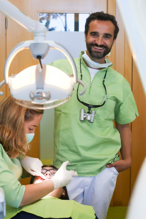 Em termos de valências, o leque de oferta é bastante abrangente: “temos a Joana, que é especialista em Odontopediatria pela Ordem dos Médicos Dentistas (OMD), e também se dedica à ortodontia; eu faço Cirurgia Oral, também especialista pela OMD, Implantes e Reabilitação Oral; depois temos um colega especialista em Endodontia, uma Higienista Oral e uma colega que é generalista, mas também faz a consulta de Odontopediatria”. Porém, a equipa está prestes a aumentar, pois “estamos em fase de contratação”, revela o responsável.